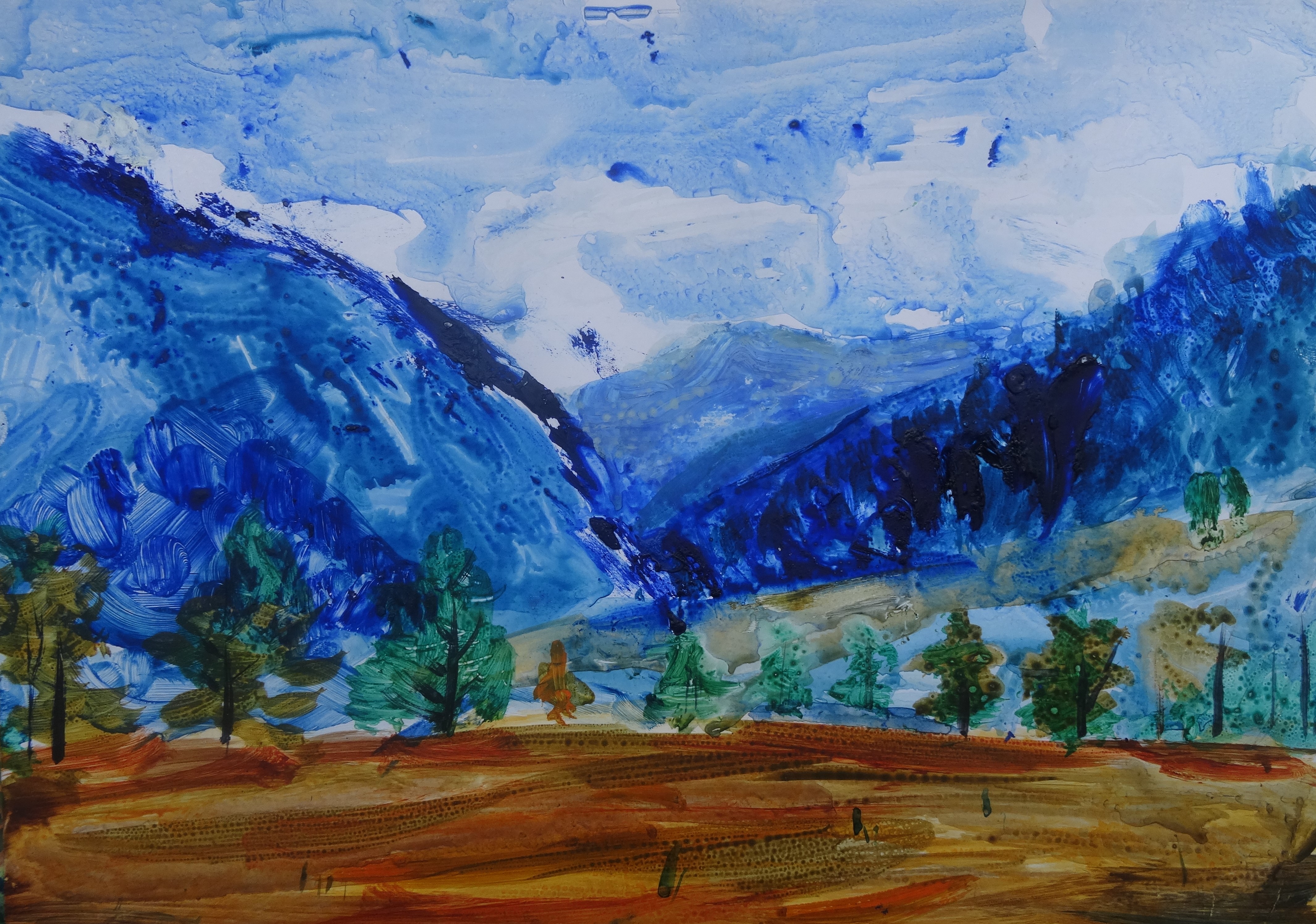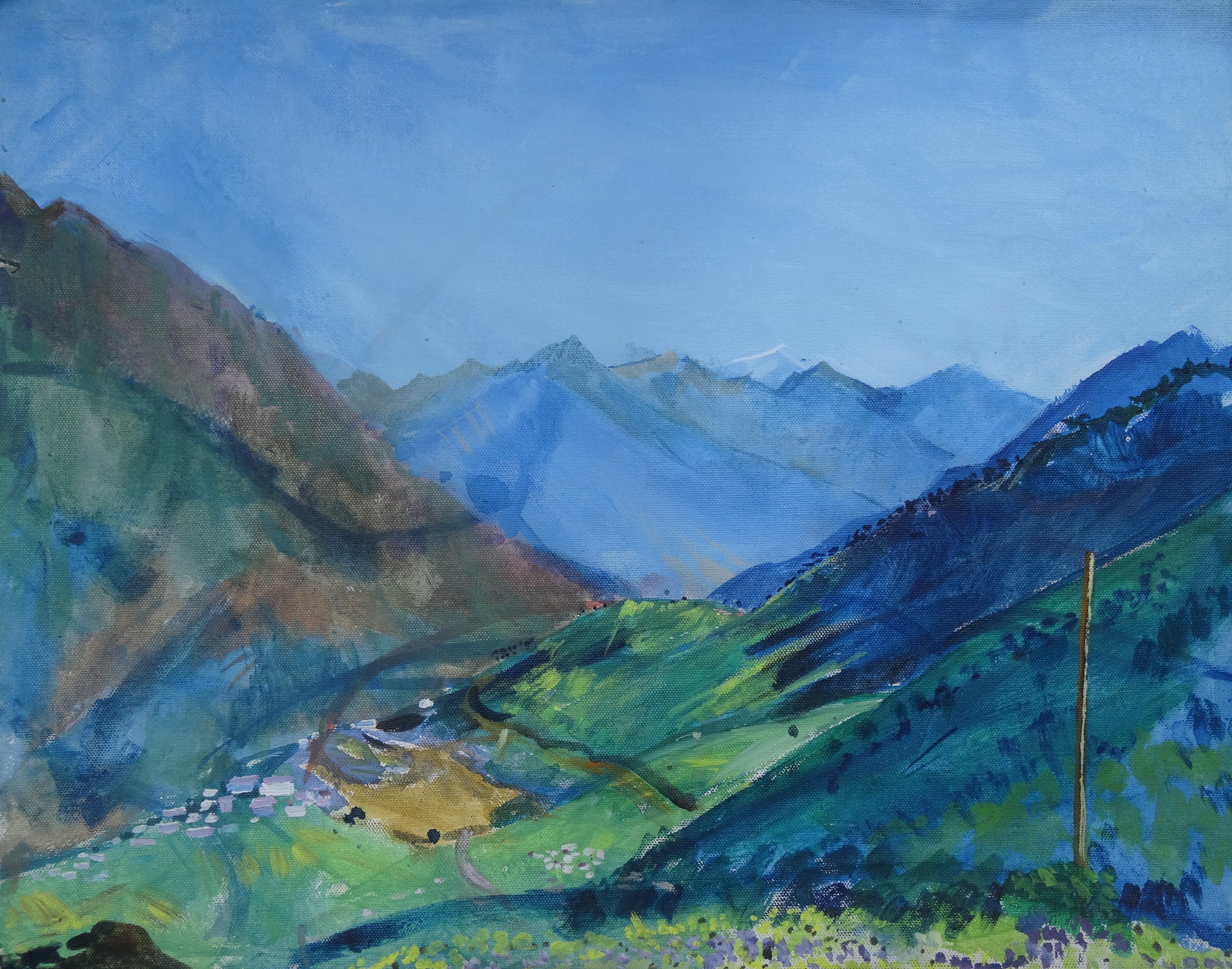 He often went outside to paint the stunning views in his beautiful hometown, capturing the bright colors of sunrises and sunsets. His love for art led him to neighboring states like Arunachal Pradesh and Meghalaya, where the rich greenery and unique cultures gave him endless inspiration. On one memorable trip, he hitched a ride from Parushuram Kund in Arunachal Pradesh, known for its calm beauty and spiritual importance, and continued on to the far east of the state, exploring the charming Dong Village and the remote Kibithoo. This journey was more than just a trip; it was a chance for him to connect with local people and explore the details of the landscapes he loved to paint, creating lasting memories.